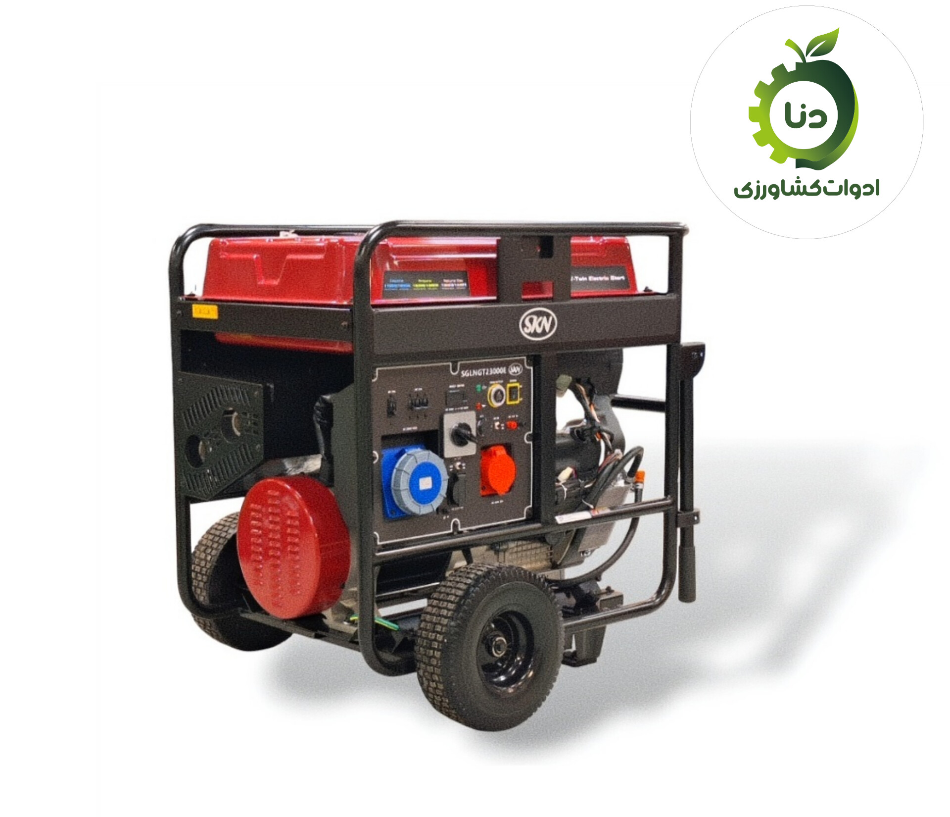 مشخصات برند SKN حداکثر توان خروجی 18kW ولتاژ 230V مدل موتور DHT1000EC نوع موتور چهار زمانه OHV حجم موتور 999cc ظرفیت مخزن سوخت 65L